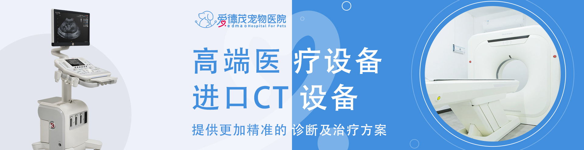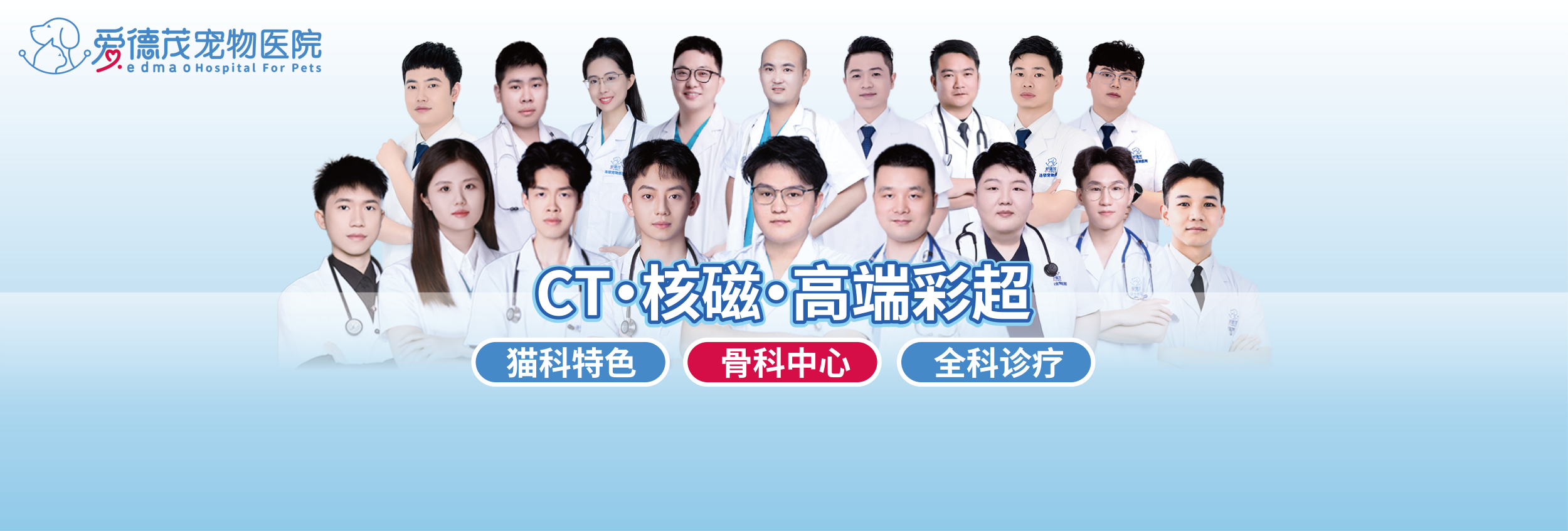 爱德茂每年定期引入迭代高端设备及技术人才,持续追求过硬的实力及优质的服务。医院开设有:犬猫内科、外科、皮肤科、口腔科,传染病科等基础科室,并有骨科、眼科、心脏专科、肾脏泌尿科、内镜科、24小时急诊加护科等特色科室。
